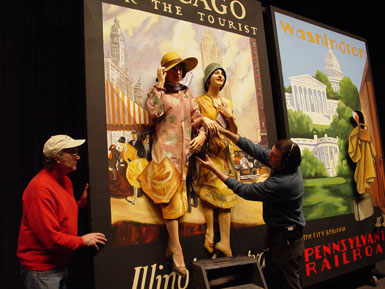 製作演出團隊人數上百人,長達兩個小時的秀,搭配現場的交響樂團,整個場子是座無虛席。據說以往暑假的表演都要在十二月以前就買好票,要不然票一下就賣光了,不過這幾年好像因為經濟不景氣,所以不用搶成那樣 …. 這個藝術節是鎮上一年一度的大事,也在今年邁入八十週年紀念日了。除了表演之外,室外也有許多本地畫家的畫作,雕塑,攝影作品展出及販售,大概最便宜的是五百塊美金起跳 .. 有時候創作者本人會在展場,有些會熱情跟你解說作品,如果有興趣,可以跟他們聊聊他們的創作想法。